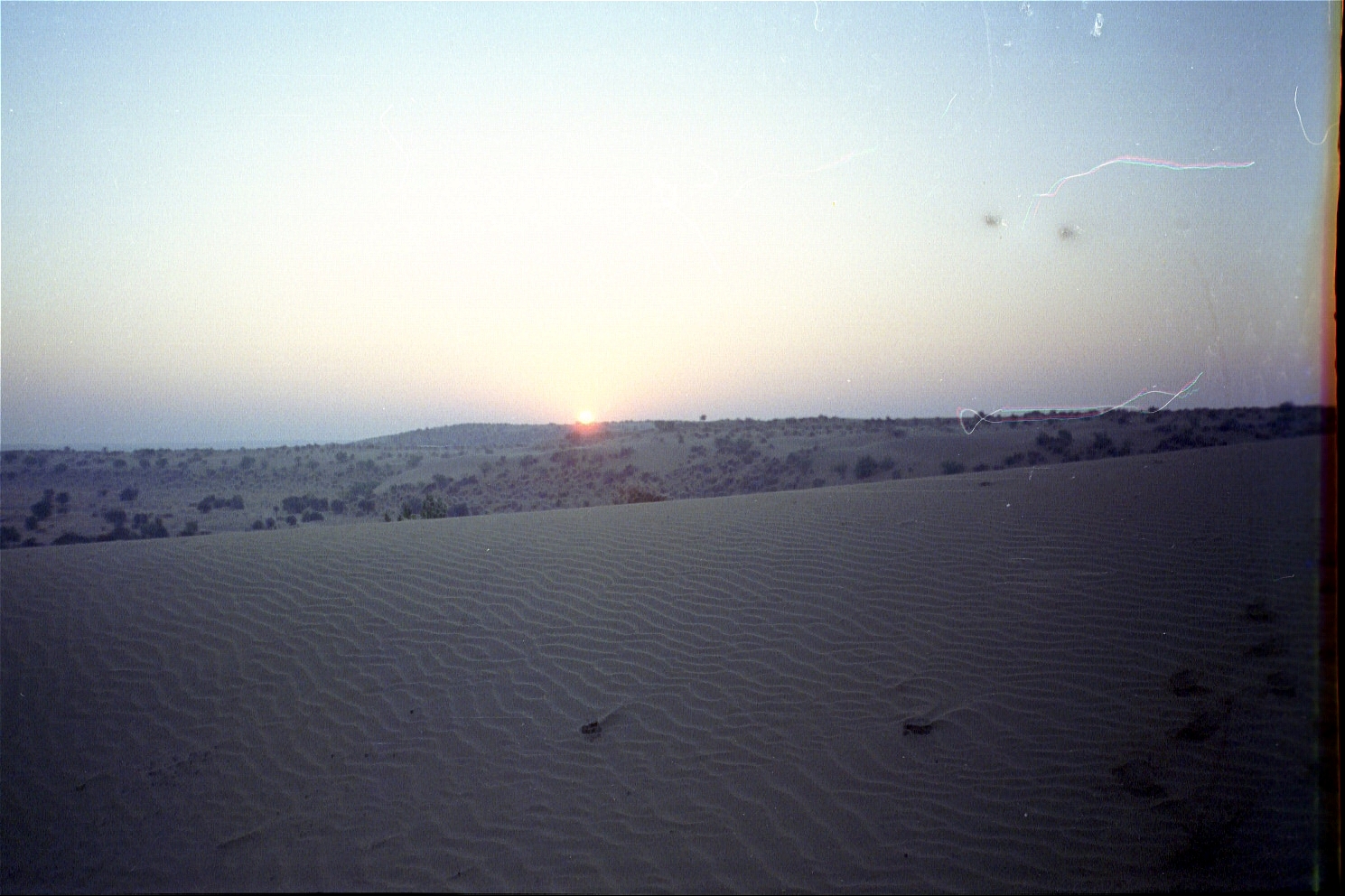 Around 9p, we take a 4-wheel drive Jeep to get lost in the desert with Manohar "Manu" Singh and Durjan Singh (Jason is christened "Goobie Singh"). We drive for about 40 kilometres/25 miles (there are no roads here) and sleep under the stars, out in the open, on a sand dune.