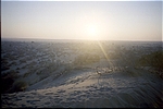 We drive back to Khuri, but find that our path is blocked by a huge set of sand dunes. We try going around but fail. Finally, we lay a track made out of brush that gets us over.