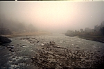 We cross the Yamuna river in the fog and catch the sun trying to burn through.