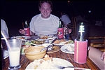 Miss the return boat by five minutes. Bagus forgets his money and has go back on a motorcycle to get it. We find a bar that serves some cool milkshakes.