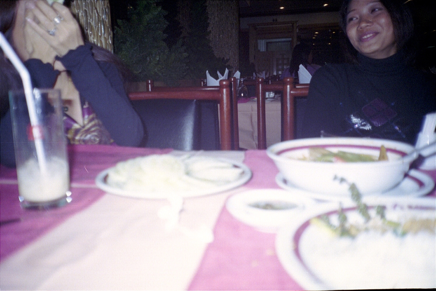 Dinner at a Chinese restaurant with Tuesday, one of his girlfriends, and friends.