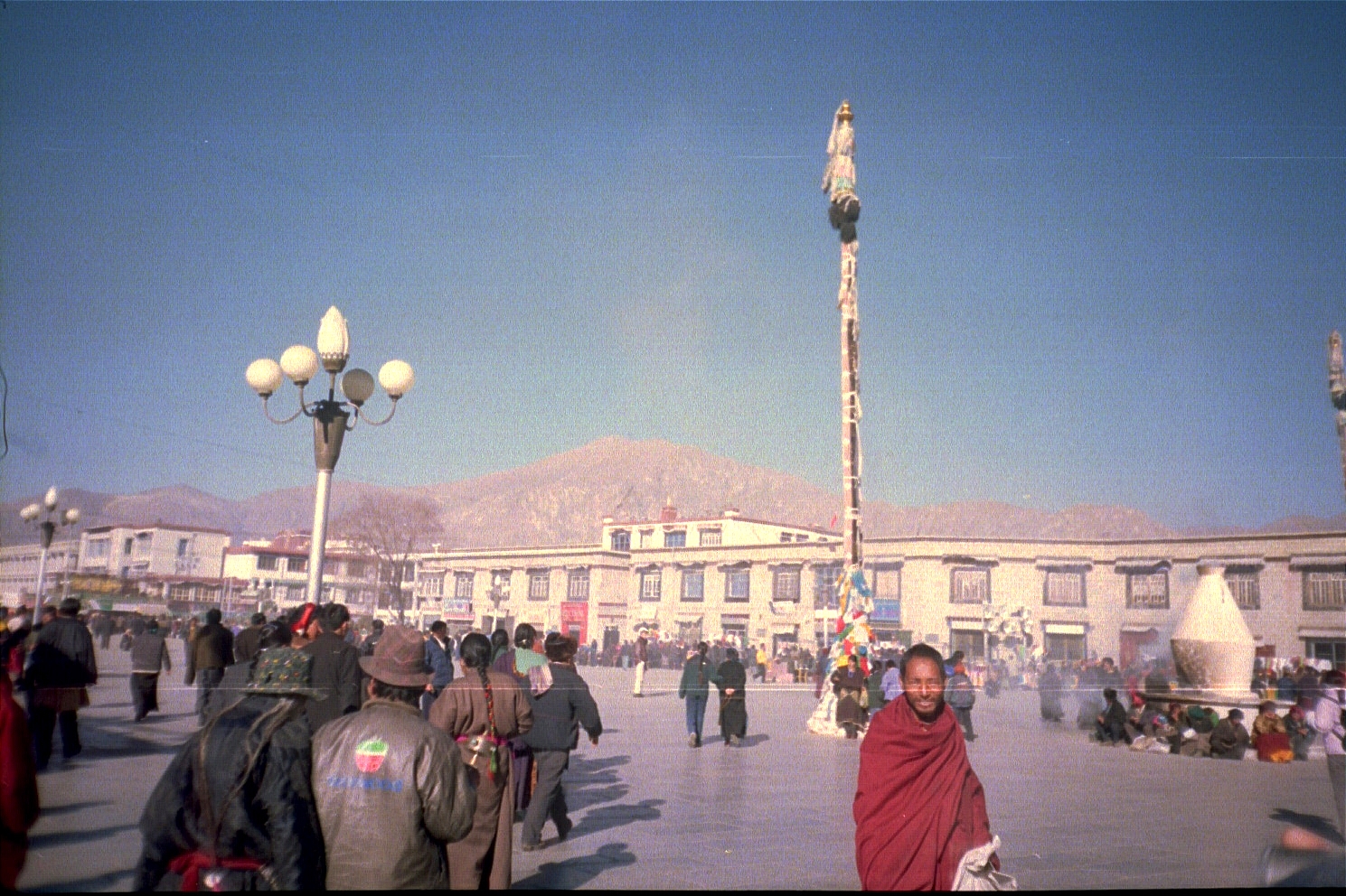 We drove from Lhatse to Xigatse (3900 metres/12,870 feet), the first big city in Tibet that we encountered. The Chinese occupation was sad to watch. We stopped at the Tashilhunpo Monastery, the seat of the 13th Panchen Lama.