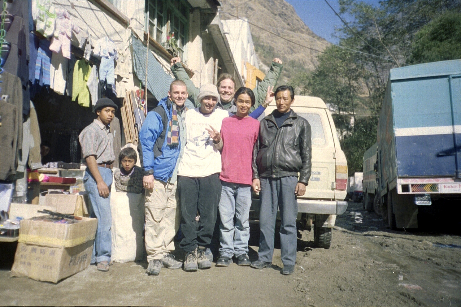 We drive (climb) from Zhangmu (2300 metres/7590 feet) through Nyalam (3550 metres/12,375 feet) where we played some hackey sack with the local kids (and feel the altitude).