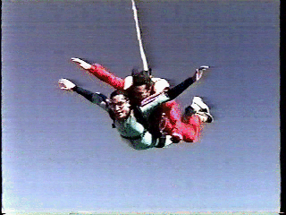Falling. From 18,000 feet. The highest in the world. The first thing we did was a tumble as I saw the sun and the mountains whirl before my eyes. And I felt us falling fast for a few seconds and then we had reached terminal velocity and it was as though we were floating. Travelling at 120 MPH and free falling for about 75 seconds (from 18,000 to 6,000 feet), one of my first thoughts was "I must be crazy to be doing something like this!" When I jumped, it was without a thought as to whether I'd survive or not.